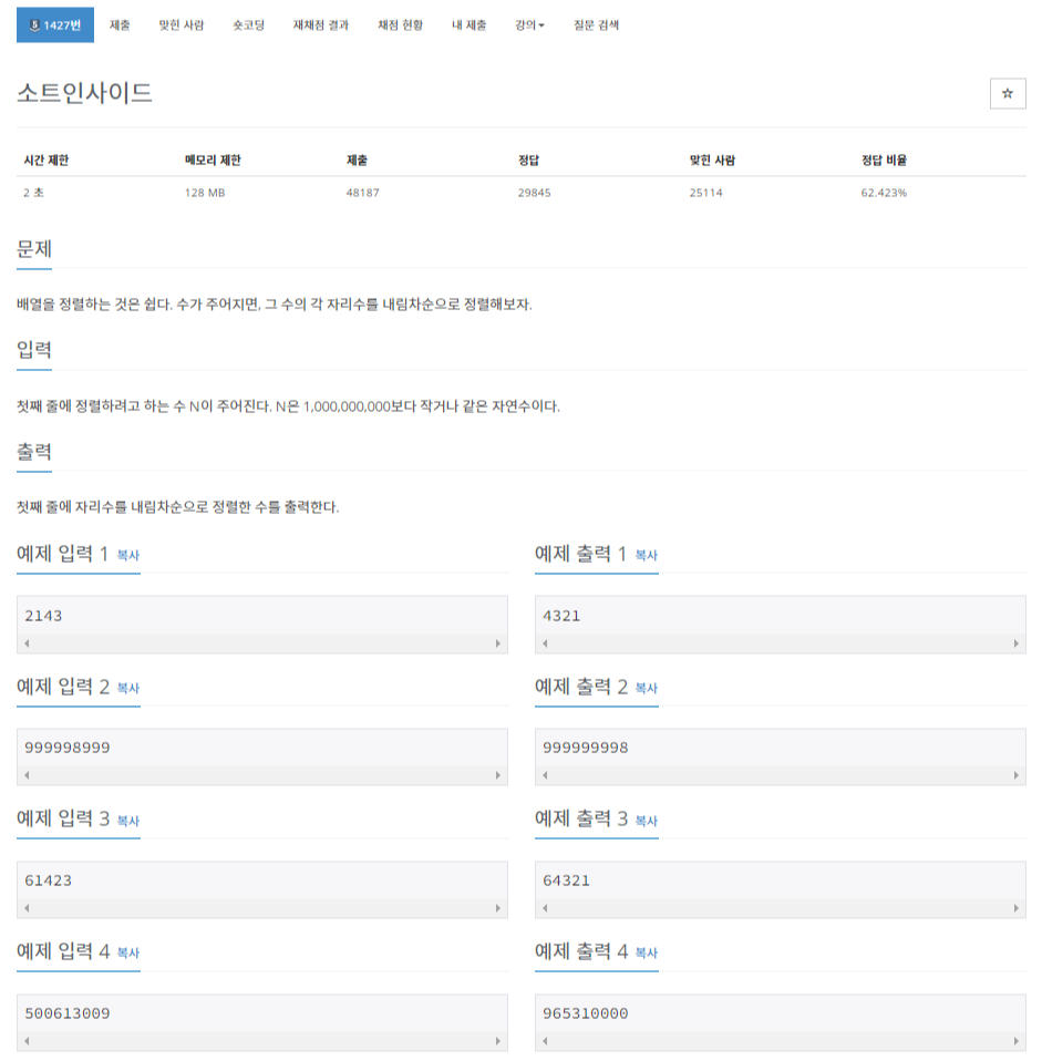 첫째 줄에 정렬하려고 하는 수 N이 주어진다. N은 1,000,000,000보다 작거나 같은 자연수이다.