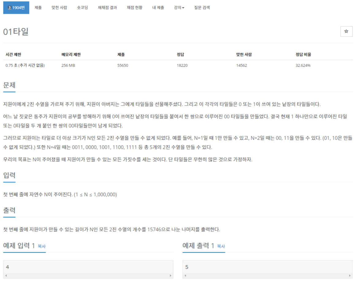 처음 제출했을 때 코드가 틀렸다고 해서 엄청 고민하다가 문제를 잘못읽어 출력란에만 %15746을 해주었다;;;