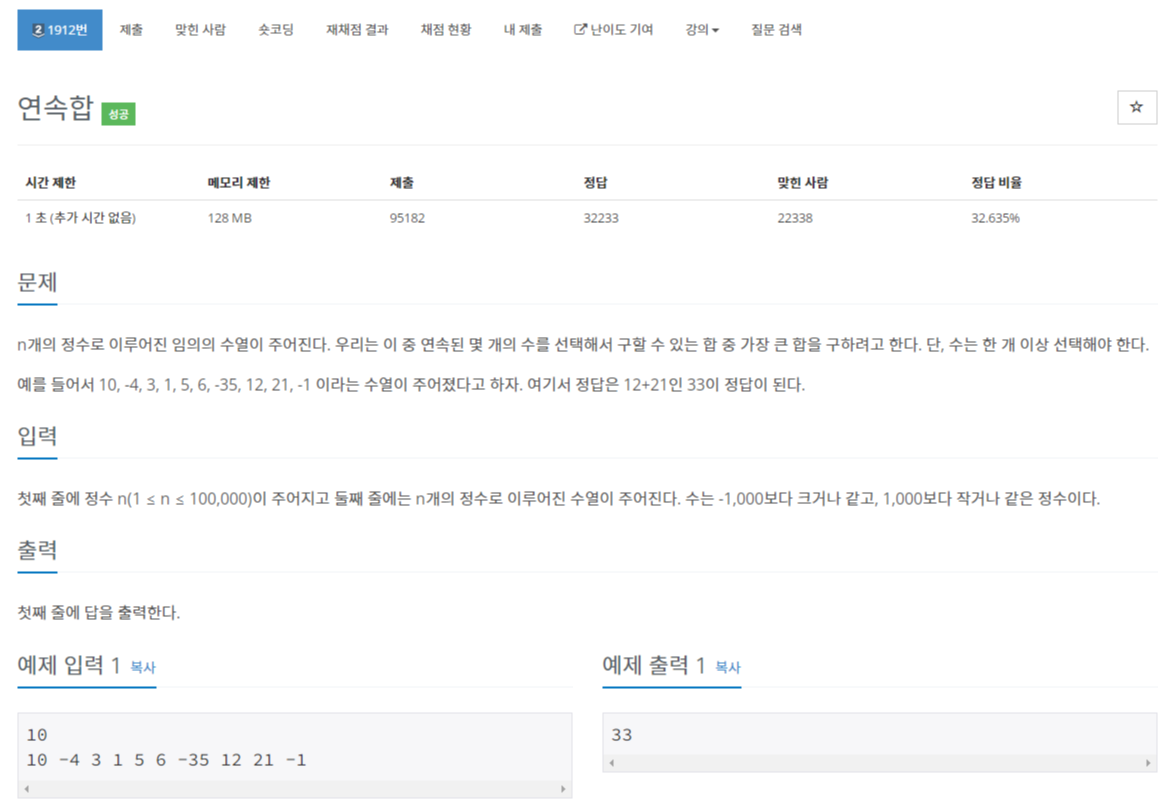 https://www.acmicpc.net/problem/1912