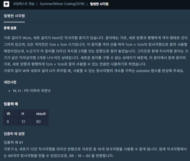 https://programmers.co.kr/learn/courses/30/lessons/62048