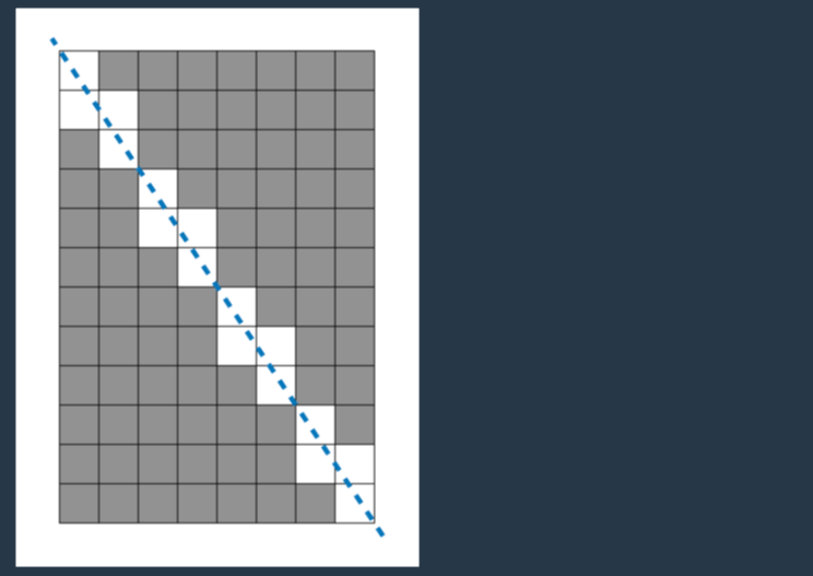 우선 4*4에서 대각선이 지나간 사각형은 총 4개이다.
