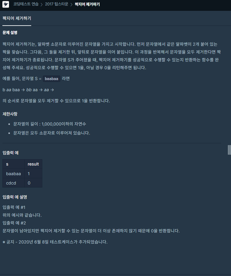 https://programmers.co.kr/learn/courses/30/lessons/12973